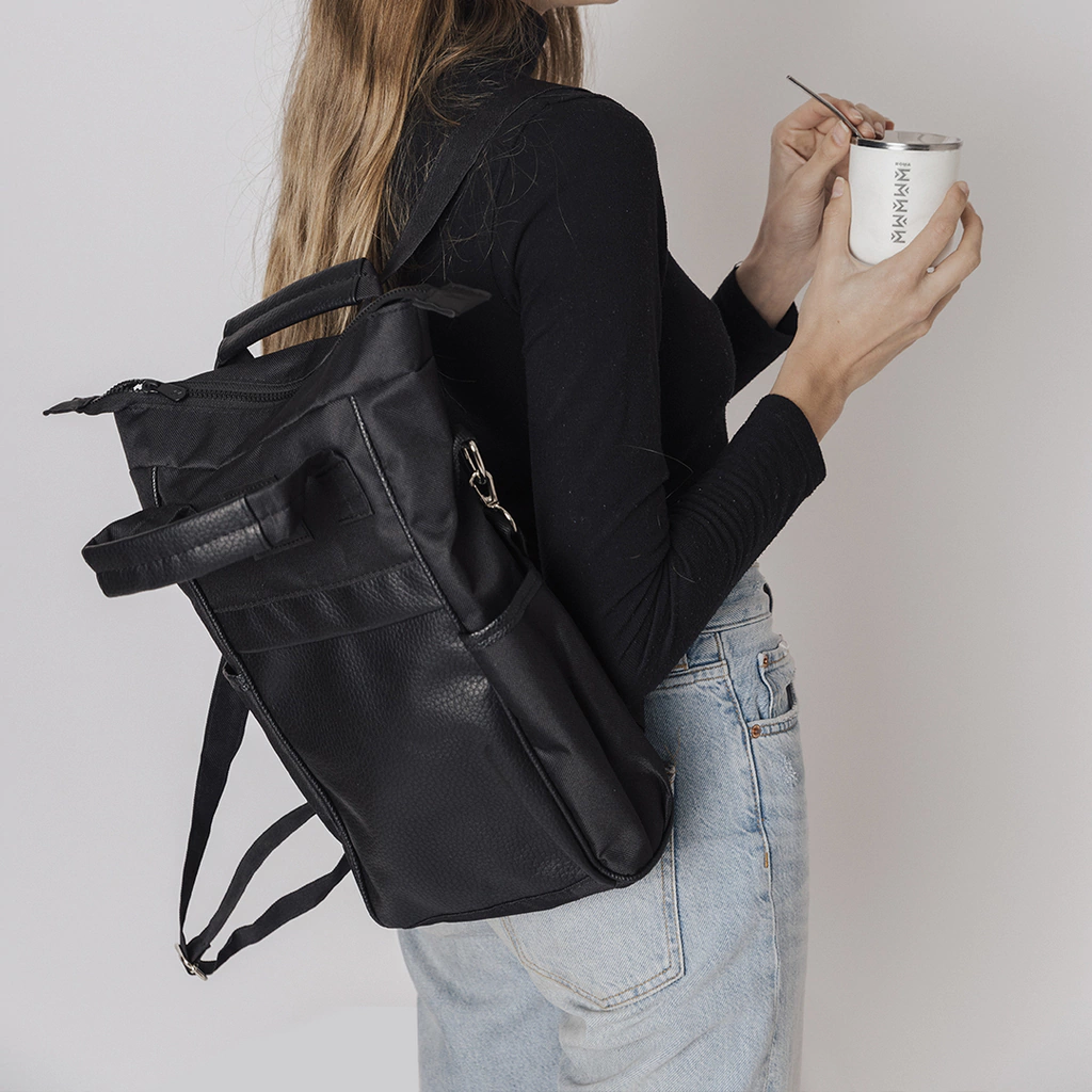 La podés llevar como mochila, al hombro tipo morral o con sus manijas de mano.